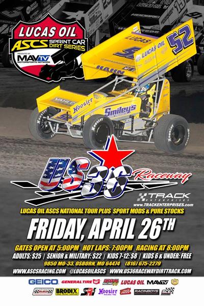 The Lucas Oil American Sprint Car Series is set to make a return to the high banks of US 36 Raceway this Friday, April 26. IMCA Sport Mods and Pure Stocks are also on the card.